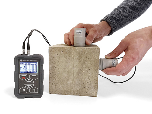 Прибор измеряет время прохождения и скорость распространения ультразвуковых колебаний в различных твердых строительных материалах с помощью датчиков сквозного и поверхностного прозвучивания. Благодаря увеличенной мощности возбуждения зондирующих импульсов высококачественный усилительный тракт прибора позволяет значительно повысить базу прозвучивания и, соответственно, работать на материалах с большим затуханием. Датчик поверхностного прозвучивания обладает базой в 120 мм, которая очень удобна для прозвучивания даже бетонных образцов-кубов.